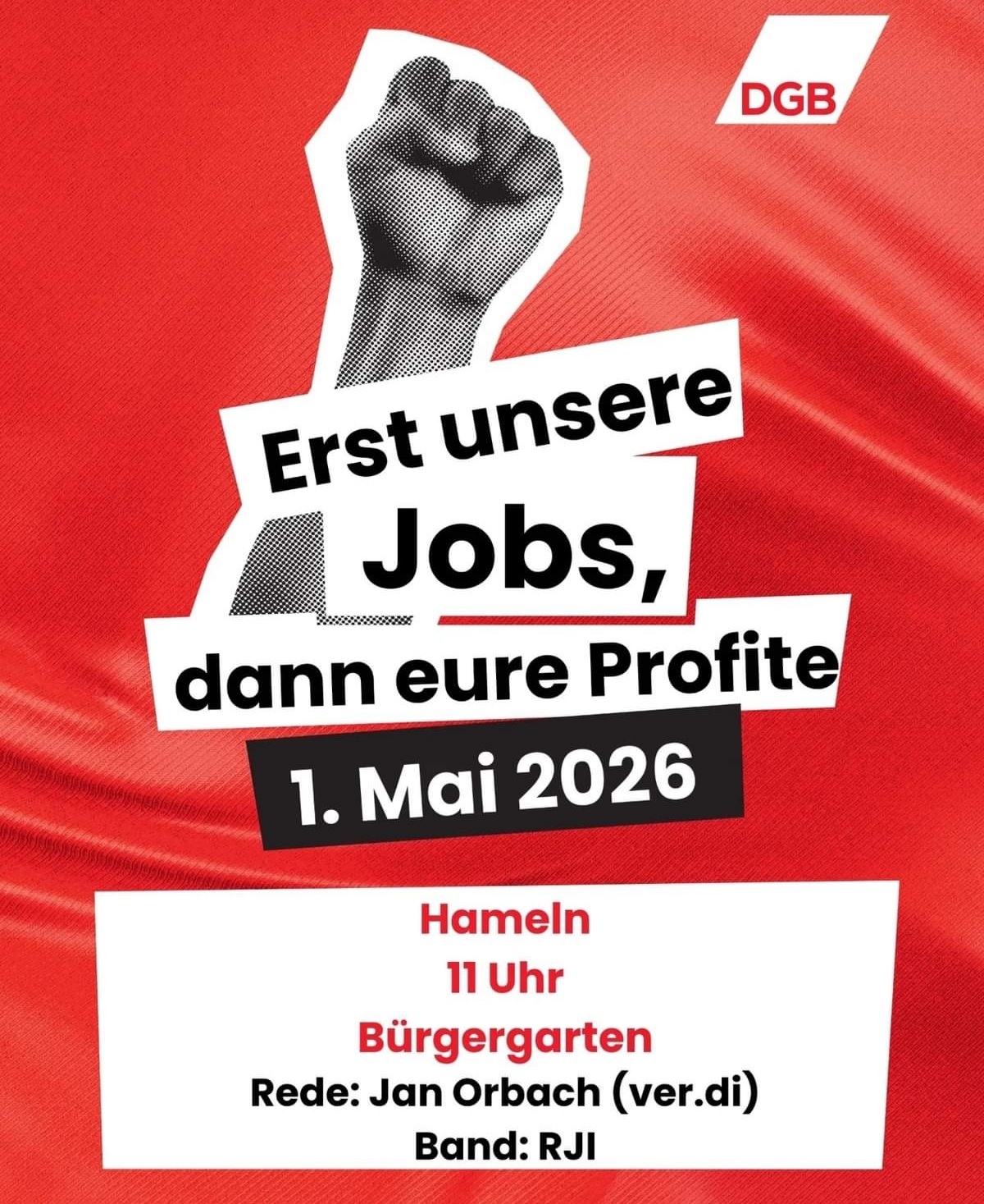 Auch in diesem Jahr beteiligen wir uns an der Kundgebung zum 1. Mai im Bürgergarten.